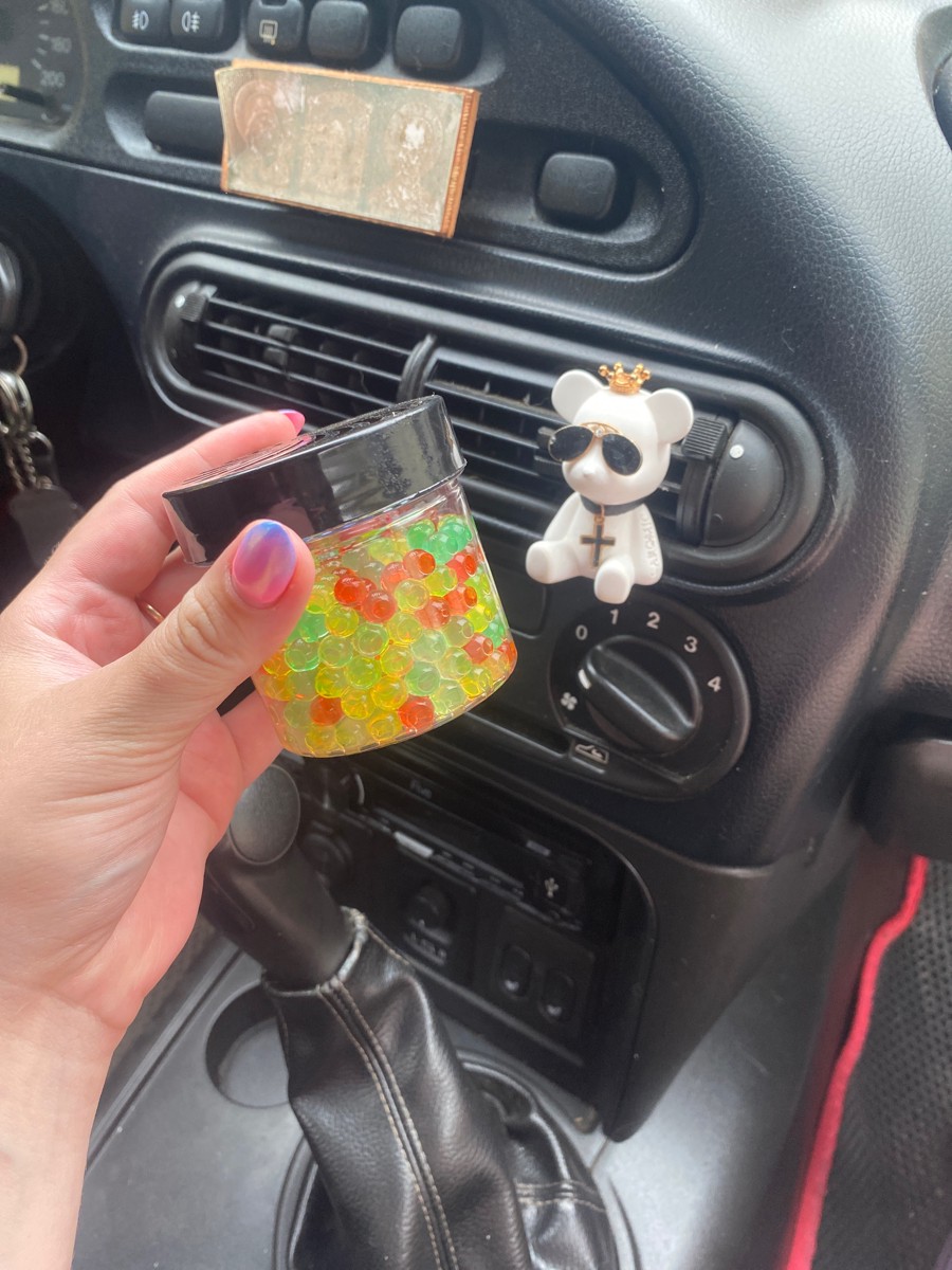 Банка с гелевыми шариками - это не только очень эффективный ароматизатор, но и украшение салона автомобиля. Банку можно использовать в подстаканнике или закрепить на панели приборов.