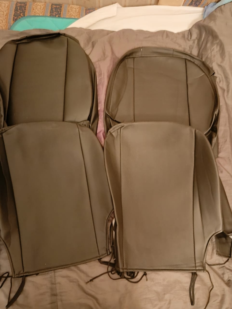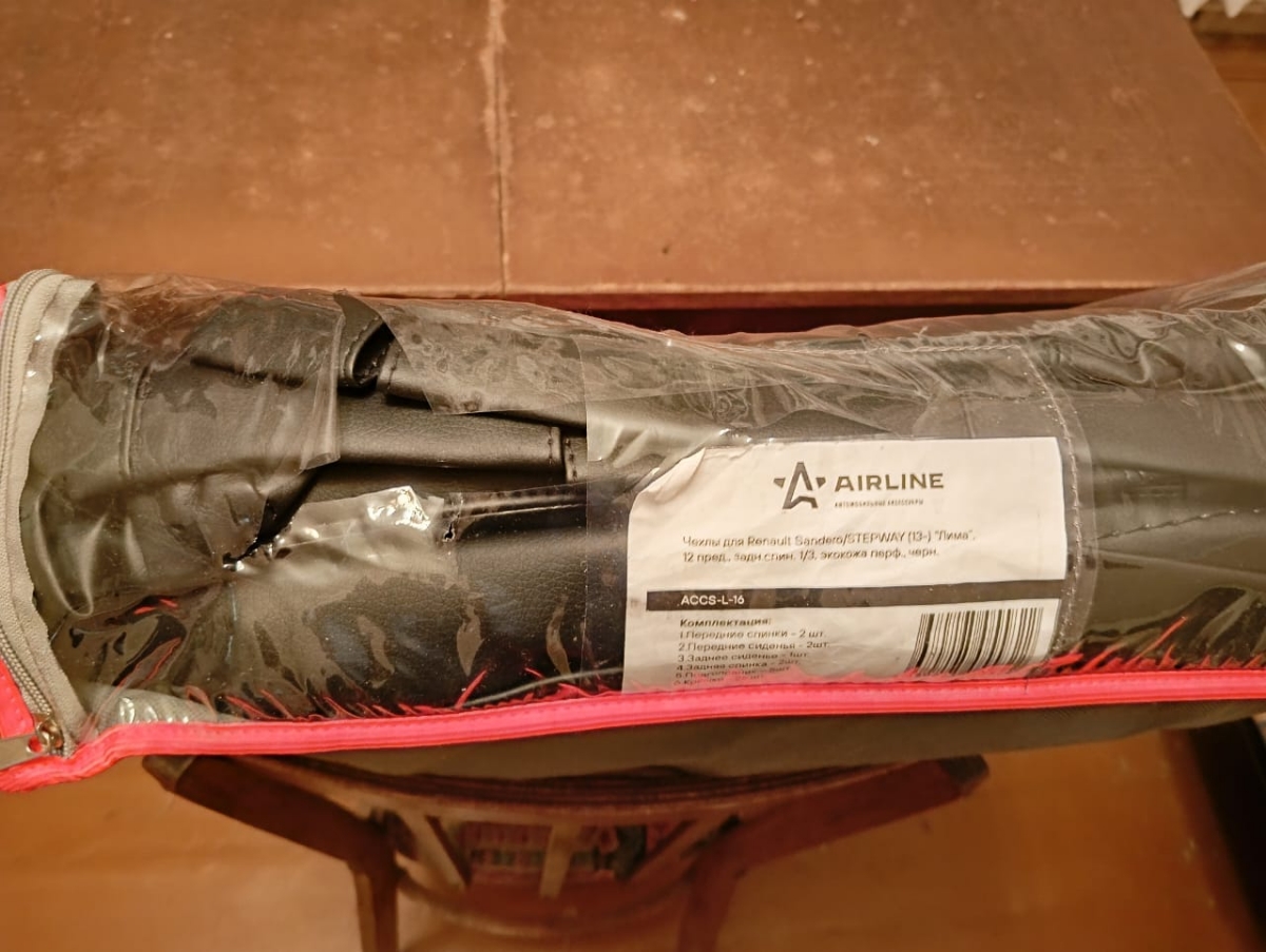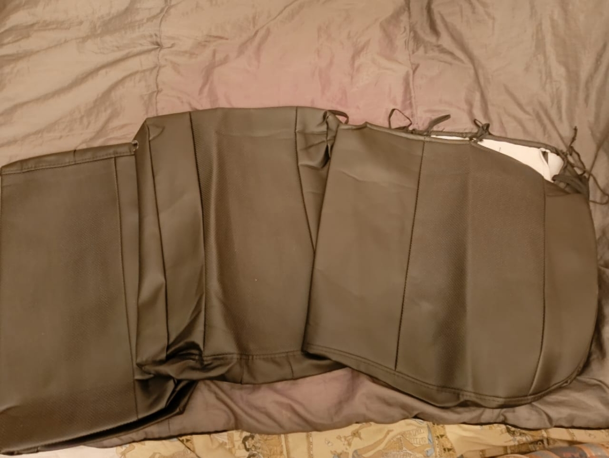 Чехлы изготовлены по бокам и сзади из высококачественной гладкой экокожи, в центральной части используется экокожа триплированная поролоном с перфорацией. На спинках передних сидений расположены вместительные карманы на молнии. Передние чехлы имеют специальный крой не мешающий открытию подушек безопасности.
