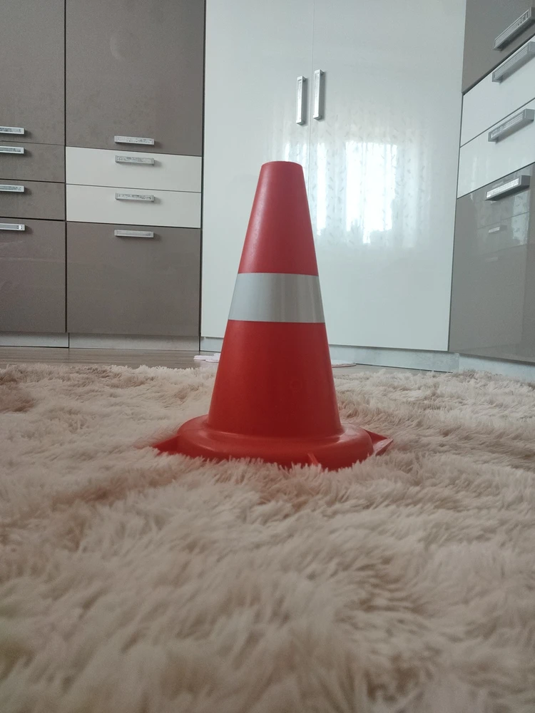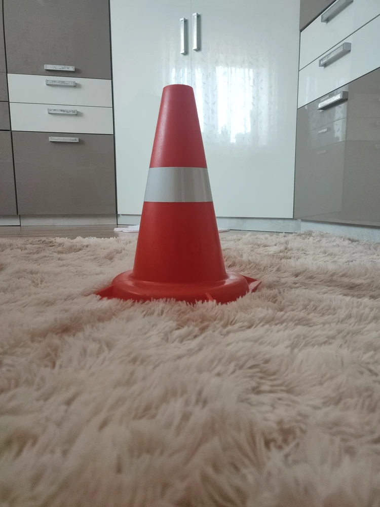 Достоинства: Прочный, яркий конус, купили ребенку играть в полицию