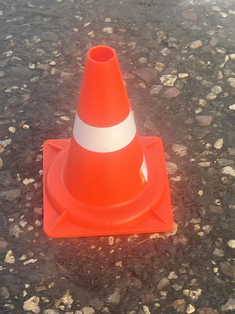 Конусы предназначены для регулировки движения транспорта и пешеходов, помогают водителям увидеть препятствия издалека и безопасно запланировать маневр, избежав аварии.