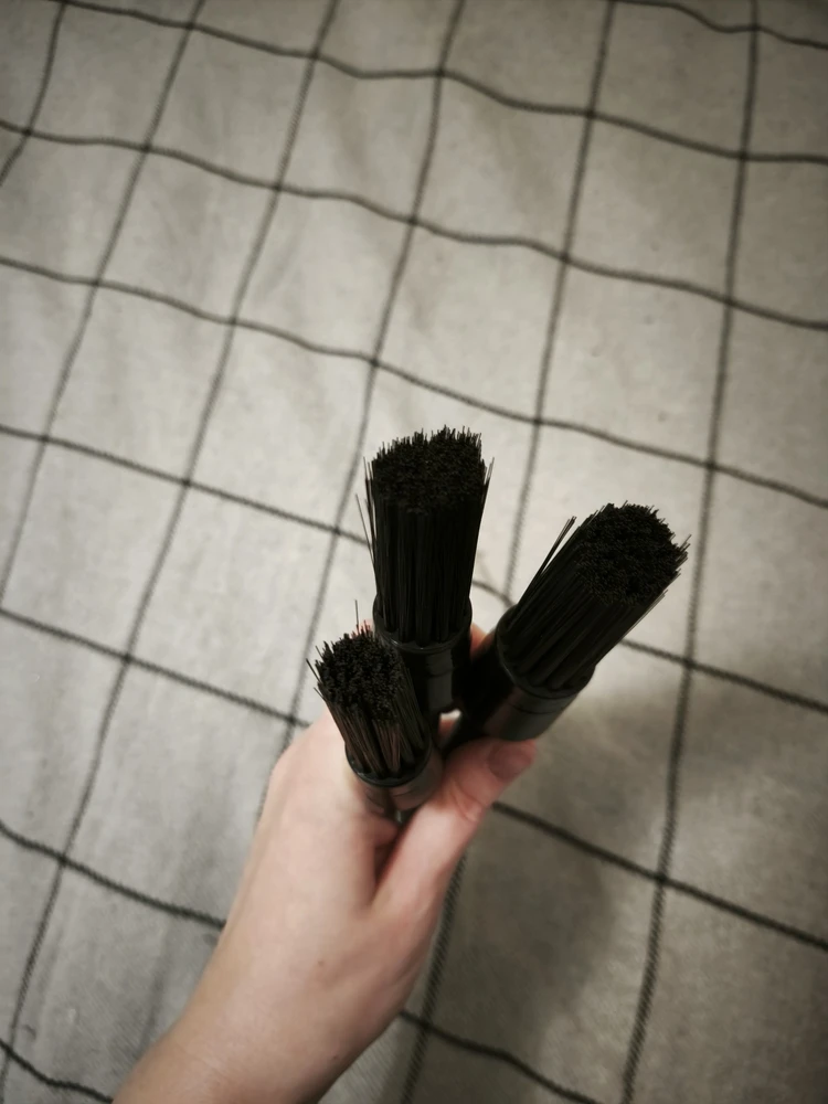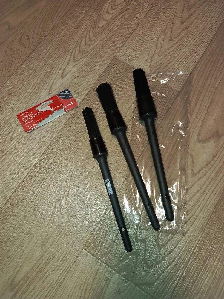 Достоинства: у кисточек длинный ворс, он не мягкий, удобно будет и пыль из щелей убрать, и помыть что-нибуть как щеточкой. многофункциональные кисточки. В ручке дырочки, можно повесить на гвоздик в гараже или вдеть веревочку.