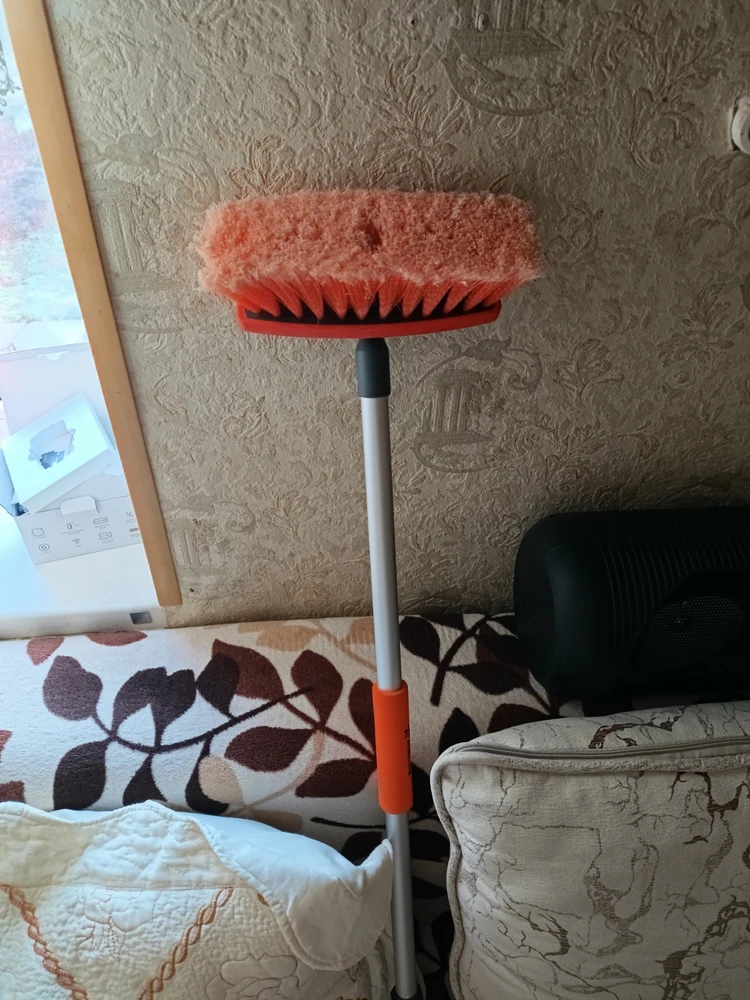 Достоинства: Щётка супер, мягкая, поэтому не царапает поверхность автомобиля, отмывает хорошо за такую то цену, очень довольны такой покупкой.