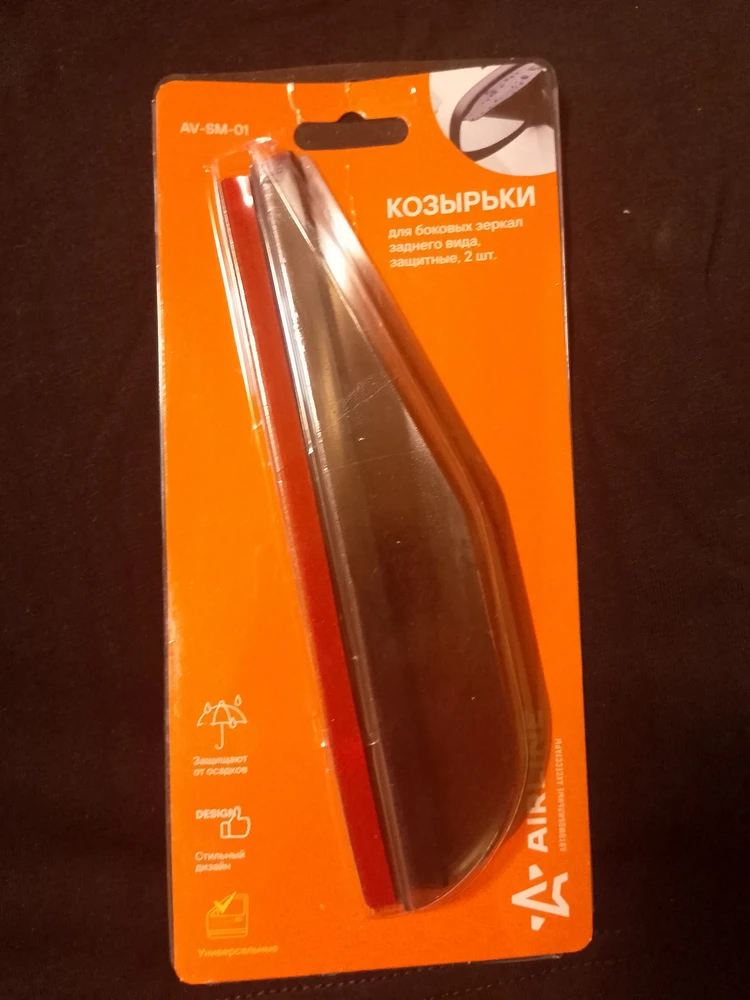 Предназначены для защиты зеркальных элементов боковых зеркала от попадания на них атмосферных осадков. Козырьки сделаны из затемненного эластичного пластика и легко монтируются при помощи двустороннего скотча.
