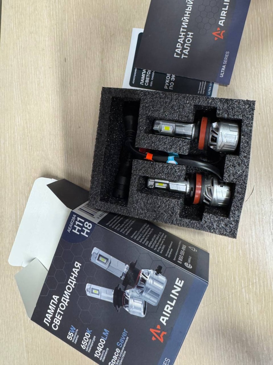 LED лампы AIRLINE AEAR284 с цоколем H11/H8 предназначены для рефлекторной и линзованной оптики, формируют четкую светотеневую границу, направляя световой поток на дорожное полотно и исключая ослепление встречных водителей, что повышает безопасность эксплуатации.