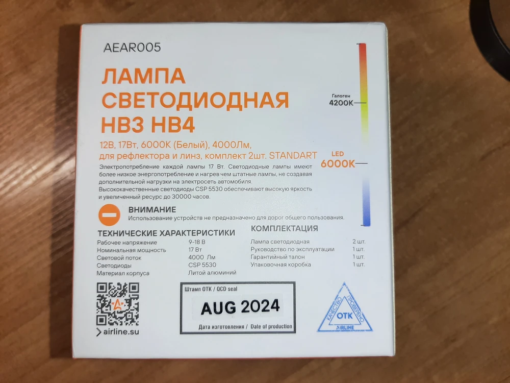 LED лампы AIRLINE AEAR005 с цоколем HB3/HB4 предназначены для рефлекторной и линзованной оптики, формируют четкую светотеневую границу, направляя световой поток на дорожное полотно и исключая ослепление встречных водителей, что повышает безопасность эксплуатации.