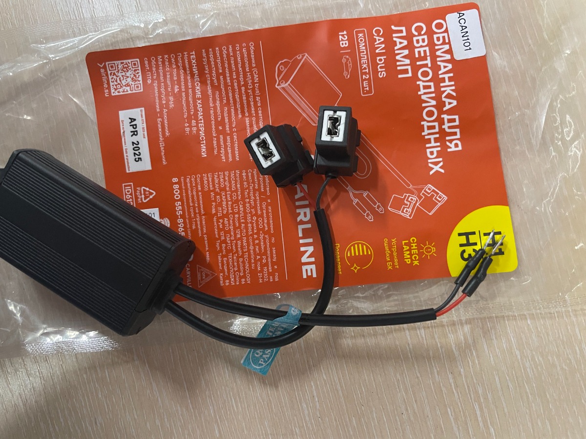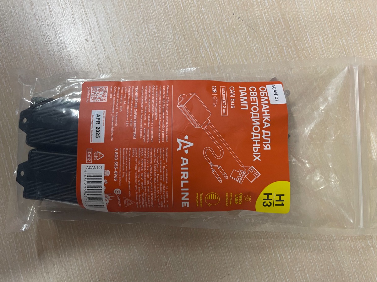 Обманка (CAN bus) AIRLINE ACAN101 для светодиодных ламп с цоколем H1/H3 предназначена для корректной работы осветительных приборов в автомобилях, оснащенных системой контроля исправности ламп.