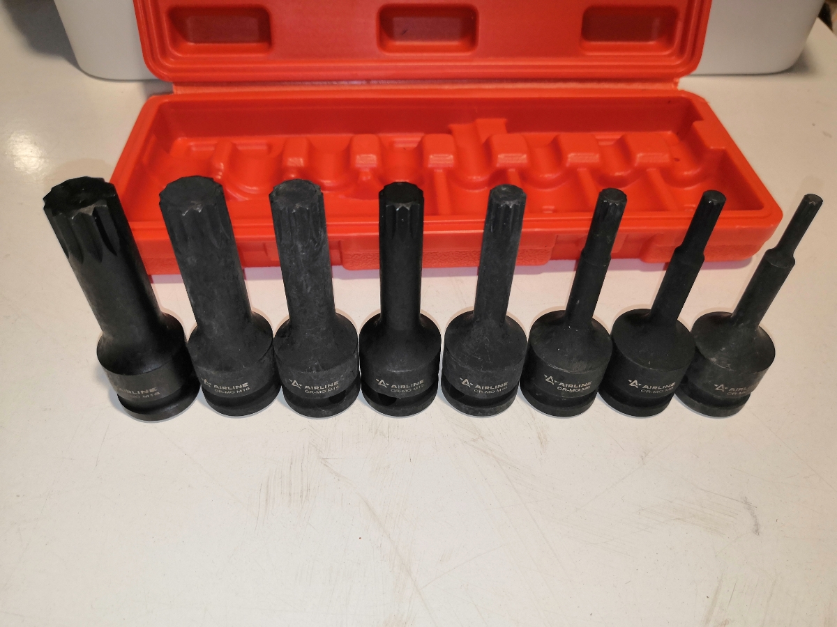 Набор головок ударных внешний SPLINE применяется для монтажа/демонтажа крепежных элементов с помощью пневматического гайковерта.