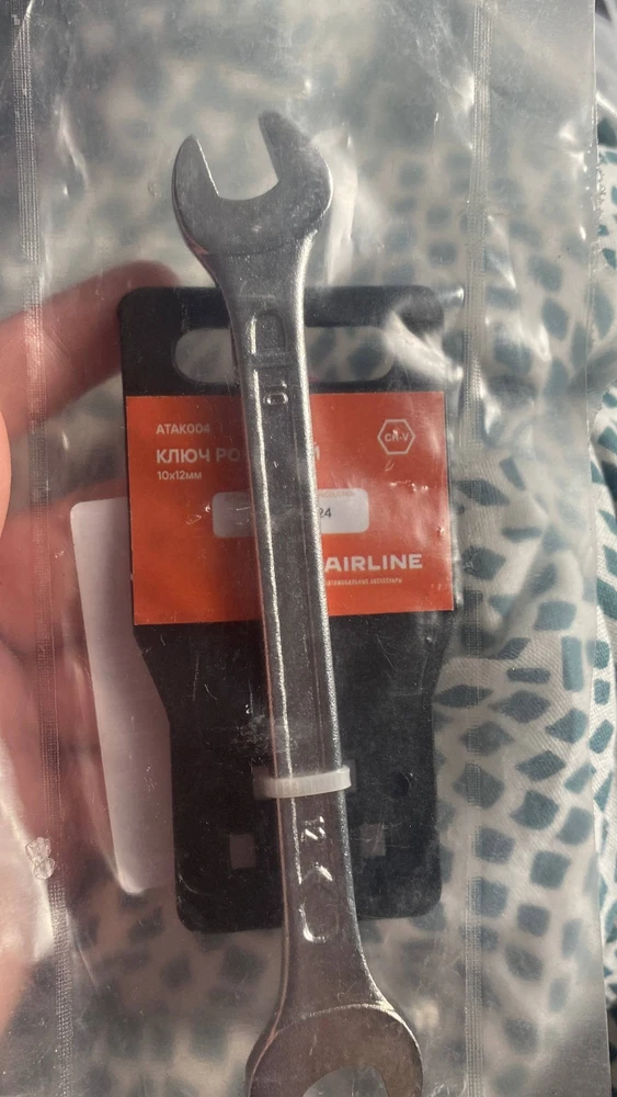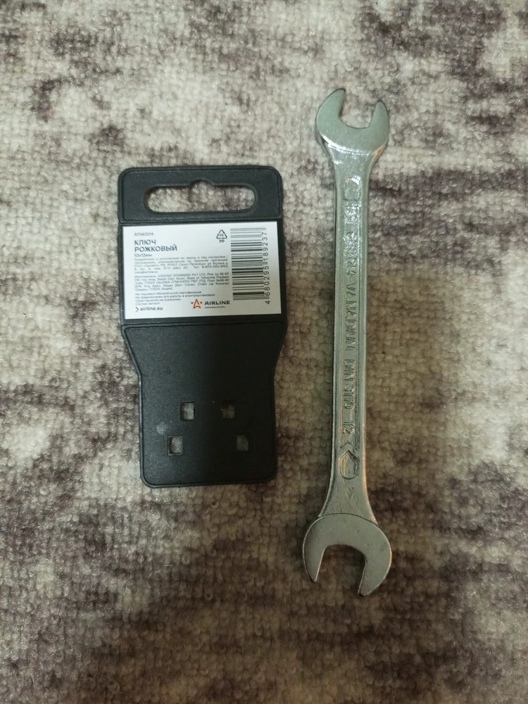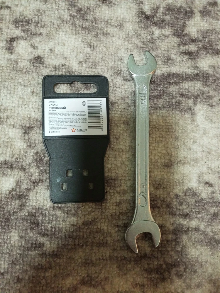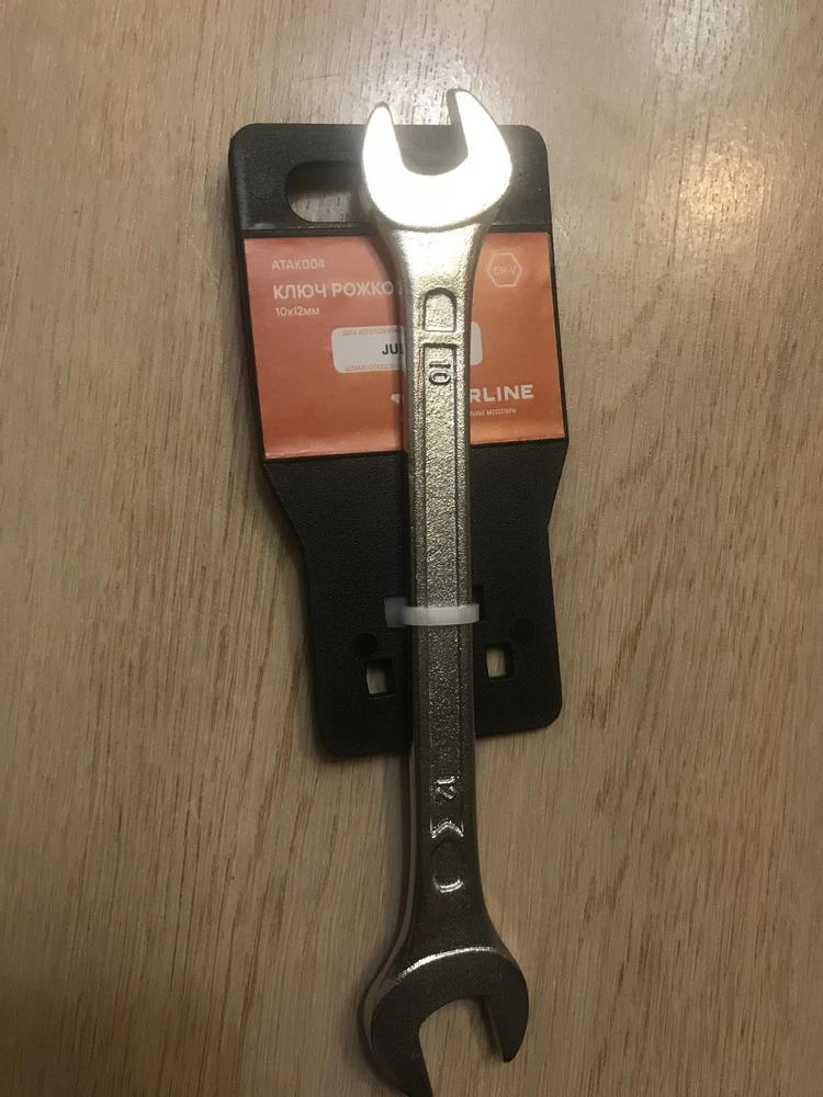 Ключ с одной стороны на 10, с другой стороны на 12. Самые ходовые размеры. Болты и гайки цепляет хорошо, не болтается.