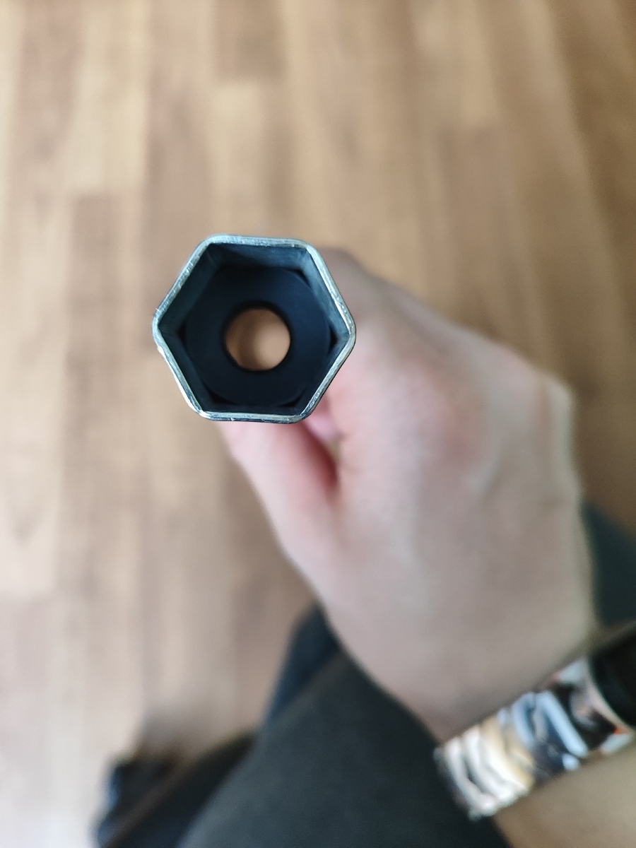 Внутри резиновый фиксатор. Ключ крепкий. Мужу понравился