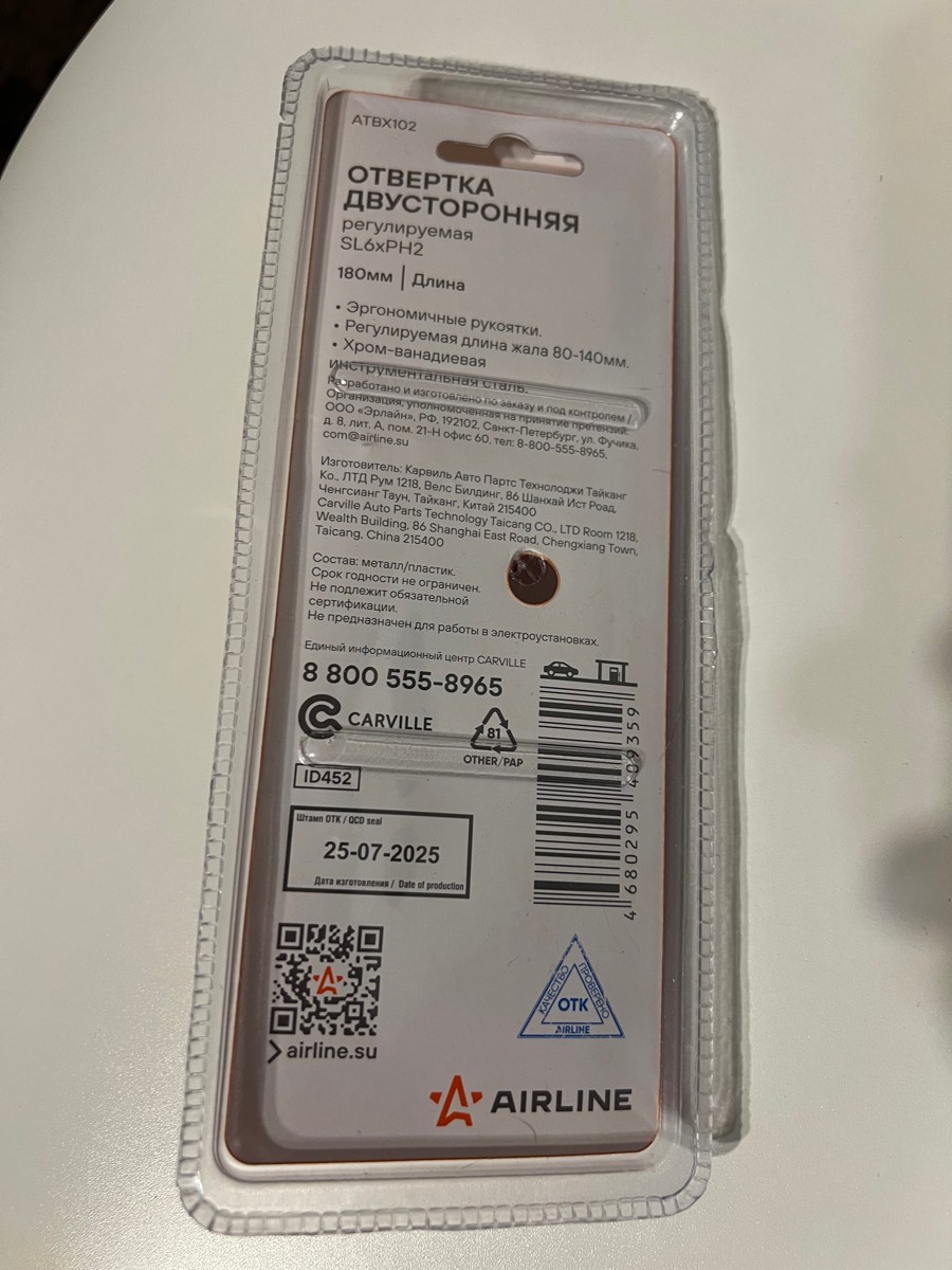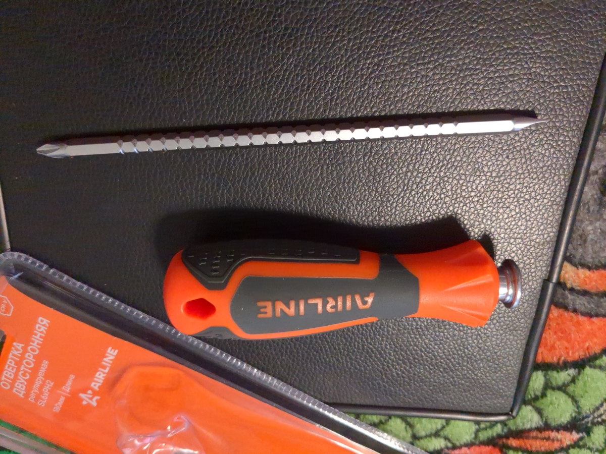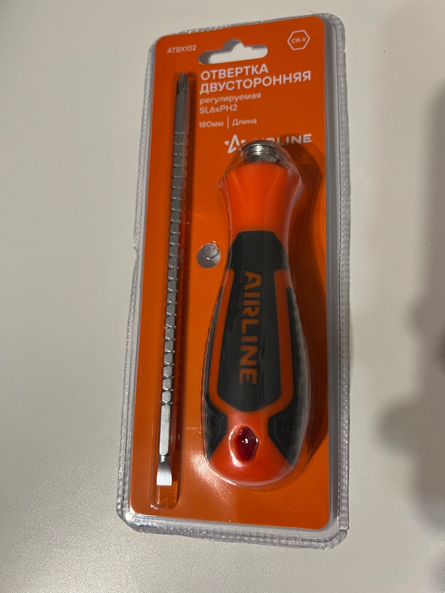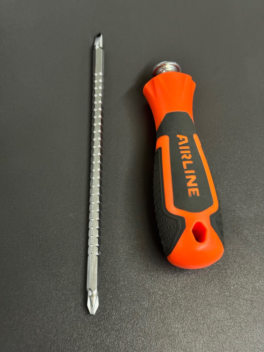 Сочетание твёрдых и мягких элементов рукоятки оптимально распределяет усилие, прилагаемое к инструменту, и предотвращает проскальзывание. Эргономичный дизайн облегчает работу. Отвёртки AIRLINE удобно подвешиваются за специальное отверстие. Лезвие отвёрток AIRLINE изготовлено из хром-ванадиевой стали, жало подвержено индукционной закалке и фосфатировано.