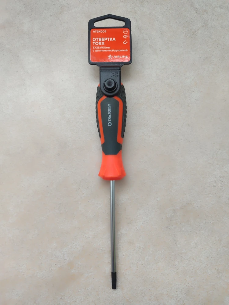 Сочетание твёрдых и мягких элементов рукоятки оптимально распределяет усилие, прилагаемое к инструменту, и предотвращает проскальзывание. Эргономичный дизайн облегчает работу. Отвёртки AIRLINE удобно подвешиваются за специальное отверстие. Лезвие отвёрток AIRLINE изготовлено из хром-ванадиевой стали, жало подвержено индукционной закалке и фосфатировано.