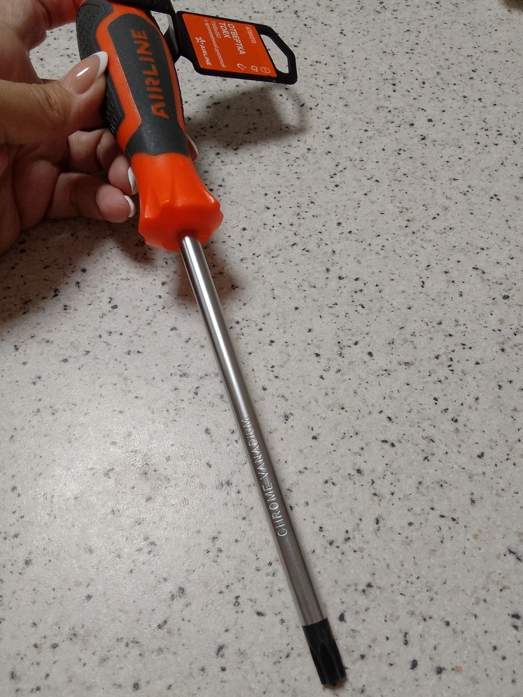 Сочетание твёрдых и мягких элементов рукоятки оптимально распределяет усилие, прилагаемое к инструменту, и предотвращает проскальзывание. Эргономичный дизайн облегчает работу. Отвёртки AIRLINE удобно подвешиваются за специальное отверстие. Лезвие отвёрток AIRLINE изготовлено из хром-ванадиевой стали, жало подвержено индукционной закалке и фосфатировано.