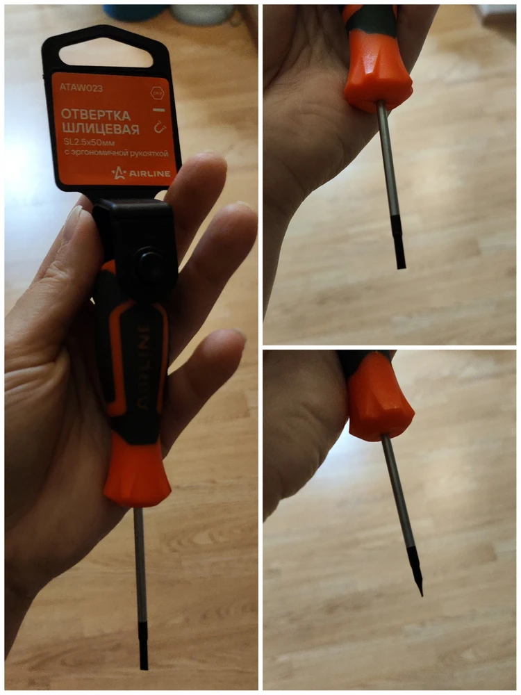Сочетание твёрдых и мягких элементов рукоятки оптимально распределяет усилие, прилагаемое к инструменту, и предотвращает проскальзывание. Эргономичный дизайн облегчает работу. Отвёртки AIRLINE удобно подвешиваются за специальное отверстие. Лезвие отвёрток AIRLINE изготовлено из хром-ванадиевой стали, жало подвержено индукционной закалке и фосфатировано.