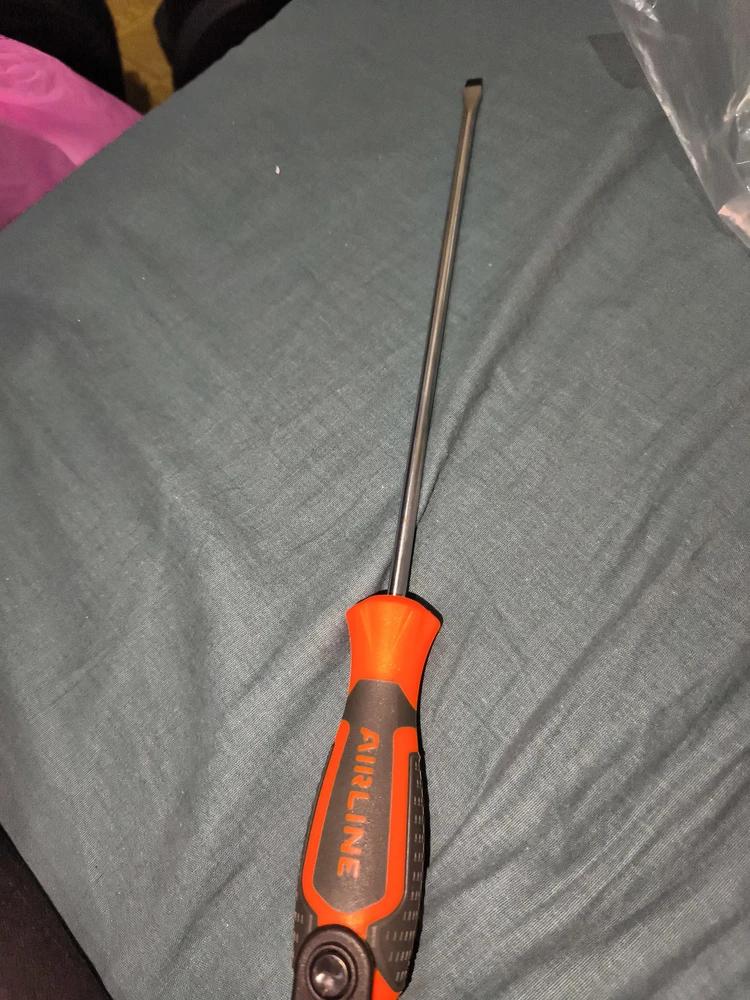 Сочетание твёрдых и мягких элементов рукоятки оптимально распределяет усилие, прилагаемое к инструменту, и предотвращает проскальзывание. Эргономичный дизайн облегчает работу. Отвёртки AIRLINE удобно подвешиваются за специальное отверстие. Лезвие отвёрток AIRLINE изготовлено из хром-ванадиевой стали, жало подвержено индукционной закалке и фосфатировано.
