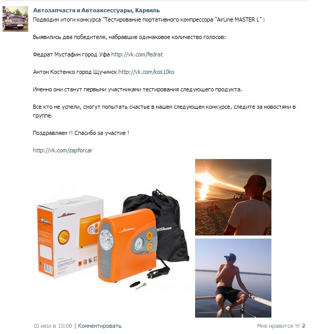 По условиям конкурса мы отправили 8 участникам из разных уголков России компрессоры Master L. Каждый участник должен был в свою очередь написать небольшой пост в группе с мнением об использовании данного компрессора. Далее в течении месяца наши герои выкладывали в группу посты с видео и фотоотчетами об использовании нашего продукта.